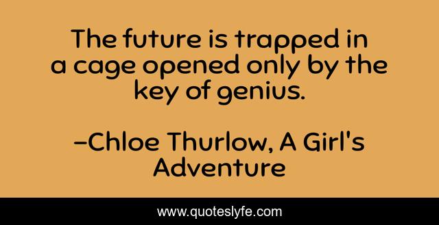 This page presents the quote "The future is trapped in a cage opened only by the key of genius.". Author of this quote is Chloe Thurlow, A Girl's Adventure. This quote is about future, cage, trapped,.