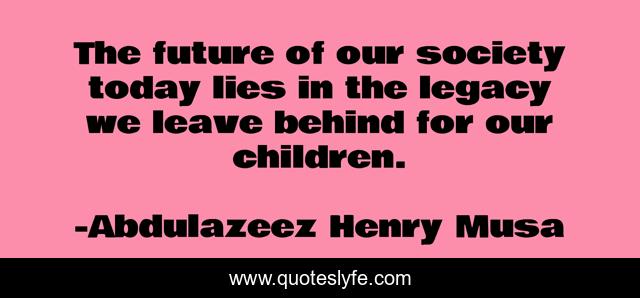 This page presents the quote "The future of our society today lies in the legacy we leave behind for our children.". Author of this quote is Abdulazeez Henry Musa. .