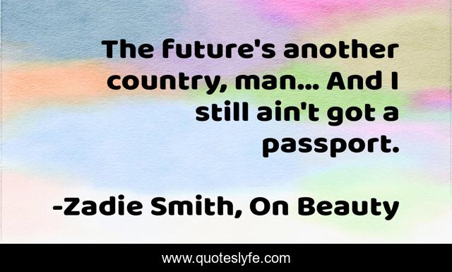 This page presents the quote "The future's another country, man... And I still ain't got a passport.". Author of this quote is Zadie Smith, On Beauty. .