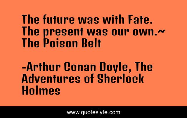 This page presents the quote "The future was with Fate. The present was our own.~ The Poison Belt". Author of this quote is Arthur Conan Doyle, The Adventures of Sherlock Holmes. .