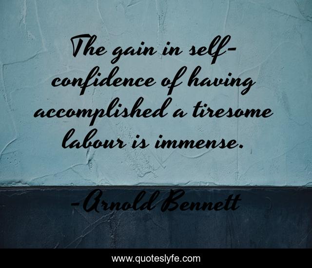 This page presents the quote "The gain in self-confidence of having accomplished a tiresome labour is immense.". Author of this quote is Arnold Bennett. This quote is about self, confidence,.