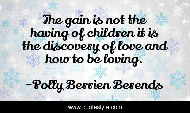This page presents the quote "The gain is not the having of children it is the discovery of love and how to be loving.". Author of this quote is Polly Berrien Berends. This quote is about love, children, affection, loving,.