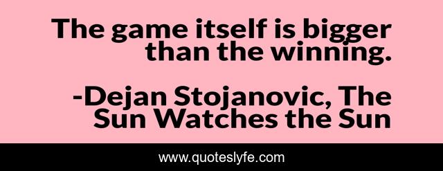 This page presents the quote "The game itself is bigger than the winning.". Author of this quote is Dejan Stojanovic, The Sun Watches the Sun. This quote is about poets, literature, dejan-stojanovic, philosophy, poetry, winning, quotes, game, books,.