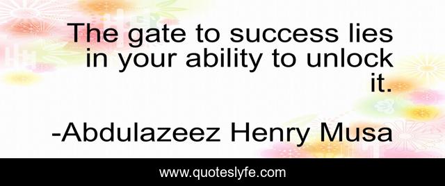 This page presents the quote "The gate to success lies in your ability to unlock it.". Author of this quote is Abdulazeez Henry Musa. .