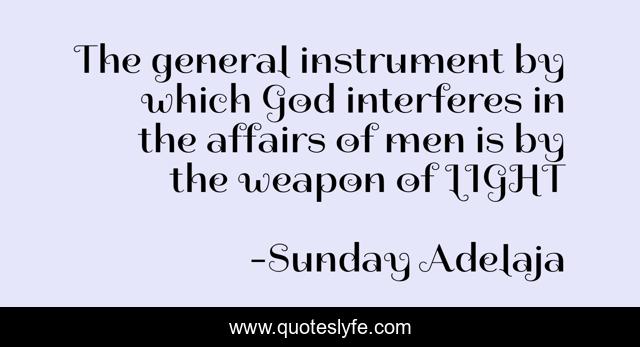 This page presents the quote "The general instrument by which God interferes in the affairs of men is by the weapon of LIGHT". Author of this quote is Sunday Adelaja. This quote is about affairs, interferes, god, weapon, men, general, instrument, which, light,.
