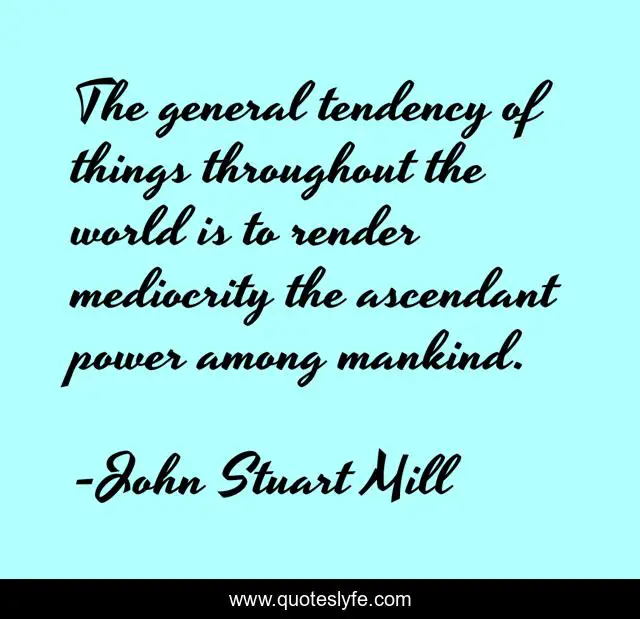 This page presents the quote "The general tendency of things throughout the world is to render mediocrity the ascendant power among mankind.". Author of this quote is John Stuart Mill. This quote is about world, mankind, mediocrity,.