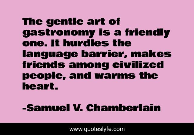This page presents the quote "The gentle art of gastronomy is a friendly one. It hurdles the language barrier, makes friends among civilized people, and warms the heart.". Author of this quote is Samuel V. Chamberlain. .
