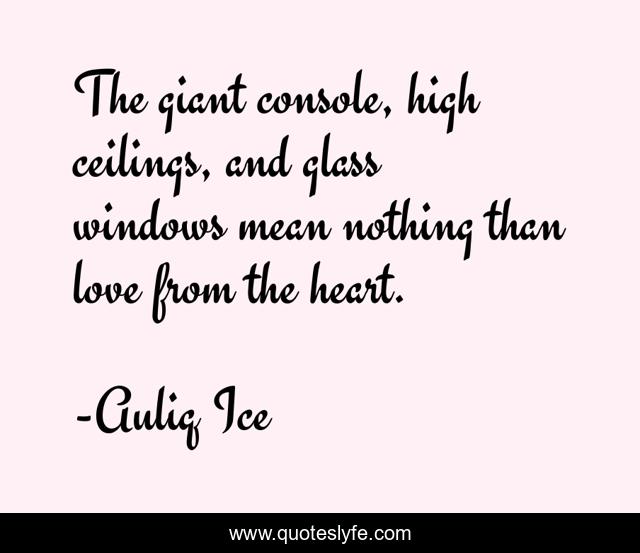 This page presents the quote "The giant console, high ceilings, and glass windows mean nothing than love from the heart.". Author of this quote is Auliq Ice. This quote is about true-love, love, affection,.