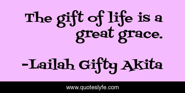 This page presents the quote "The gift of life is a great grace.". Author of this quote is Lailah Gifty Akita. This quote is about enthusiasm, spiritual, life, inspirational, grace,.
