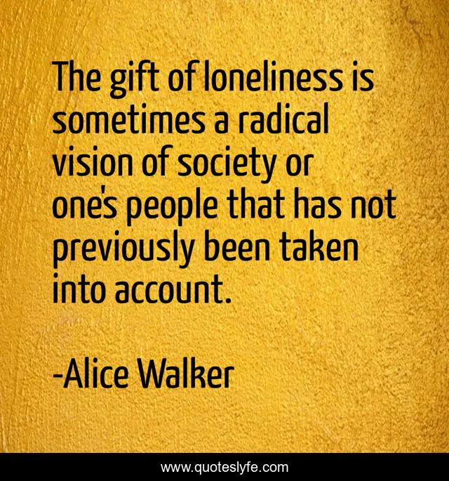"Alice Walker Quotes." Quoteslyfe.com, 2025. Sat. 06 Dec. 2025. <https://www.quoteslyfe.com/quote/The-gift-of-loneliness-is-sometimes-a-329297>.