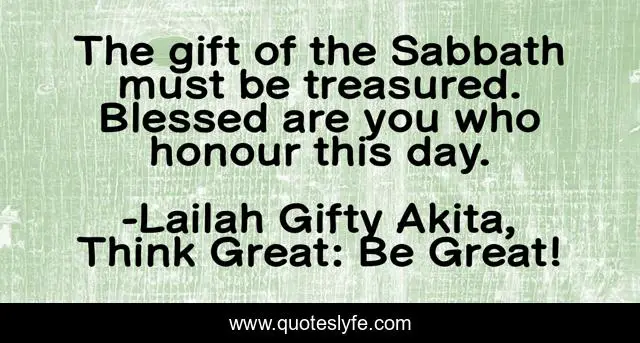"Lailah Gifty Akita, Think Great: Be Great! Quotes." Quoteslyfe.com, 2025. Tue. 09 Dec. 2025. <https://www.quoteslyfe.com/quote/The-gift-of-the-Sabbath-must-be-121291>.