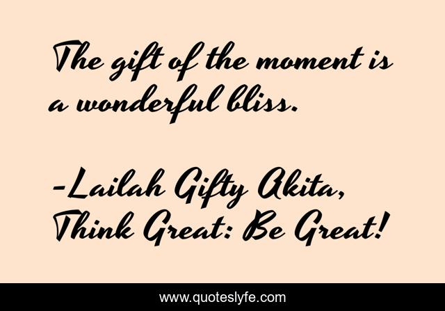 "Lailah Gifty Akita, Think Great: Be Great! Quotes." Quoteslyfe.com, 2025. Fri. 05 Dec. 2025. <https://www.quoteslyfe.com/quote/The-gift-of-the-moment-is-a-95189>.