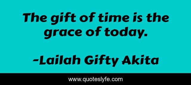 This page presents the quote "The gift of time is the grace of today.". Author of this quote is Lailah Gifty Akita. This quote is about inspirational, time, enthusiasm, grace, today, lifel-lessons,.