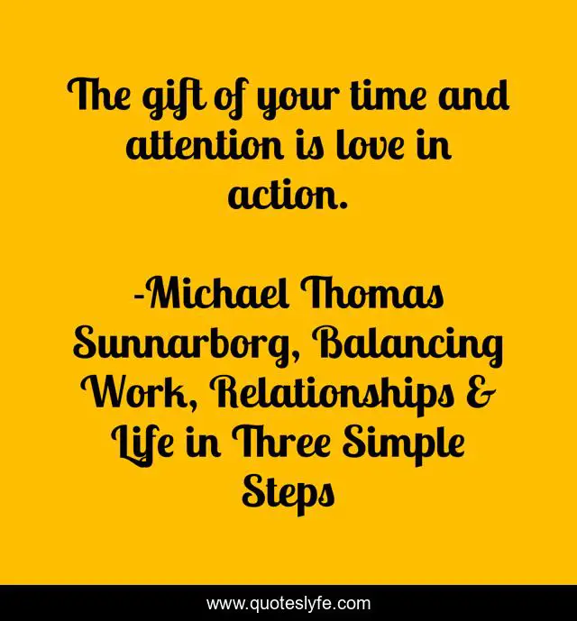 "Michael Thomas Sunnarborg, Balancing Work, Relationships & Life in Three Simple Steps Quotes." Quoteslyfe.com, 2025. Fri. 05 Dec. 2025. <https://www.quoteslyfe.com/quote/The-gift-of-your-time-and-attention-252688>.