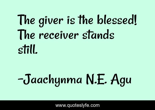 "Jaachynma N.E. Agu Quotes." Quoteslyfe.com, 2025. Sat. 06 Dec. 2025. <https://www.quoteslyfe.com/quote/The-giver-is-the-blessed-The-receiver-120838>.