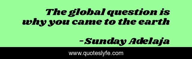 This page presents the quote "The global question is why you came to the earth". Author of this quote is Sunday Adelaja. This quote is about life, global, question, calling, purpose, earth,.