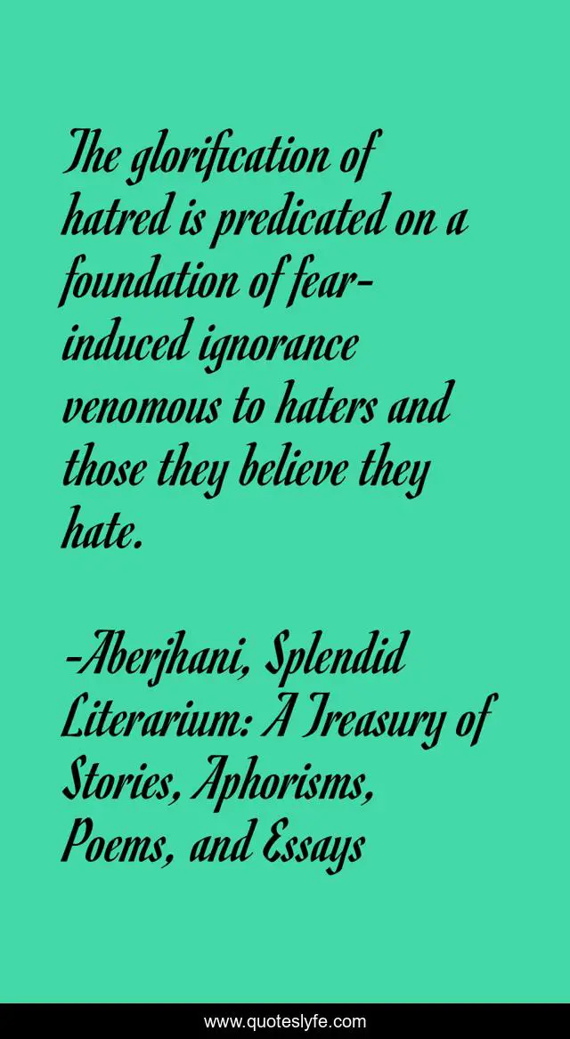 "Aberjhani, Splendid Literarium: A Treasury of Stories, Aphorisms, Poems, and Essays Quotes." Quoteslyfe.com, 2025. Fri. 05 Dec. 2025. <https://www.quoteslyfe.com/quote/The-glorification-of-hatred-is-predicated-on-45642>.