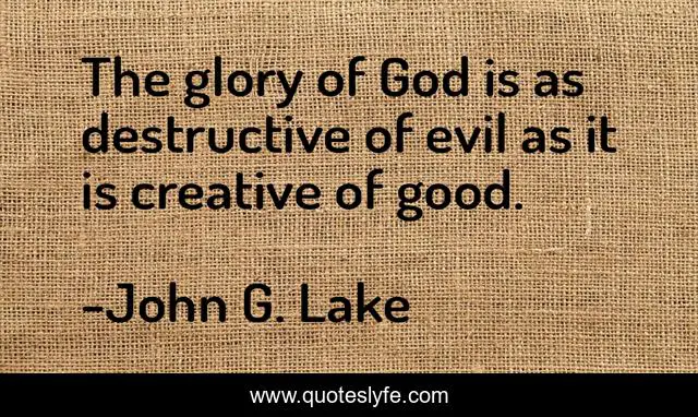 This page presents the quote "The glory of God is as destructive of evil as it is creative of good.". Author of this quote is John G. Lake. This quote is about evangelist, annointing, christian, glory, god, healing,.