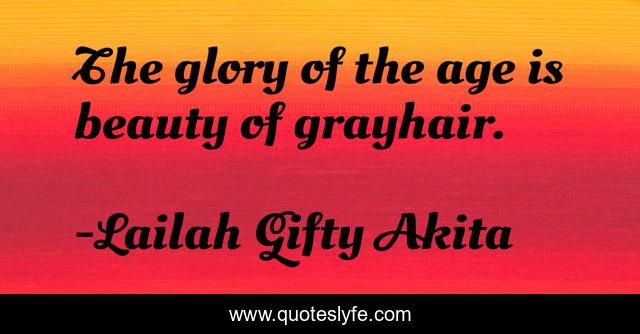 This page presents the quote "The glory of the age is beauty of grayhair.". Author of this quote is Lailah Gifty Akita. This quote is about age, gray-hair, old-people, elderly, wise-thoughts,.