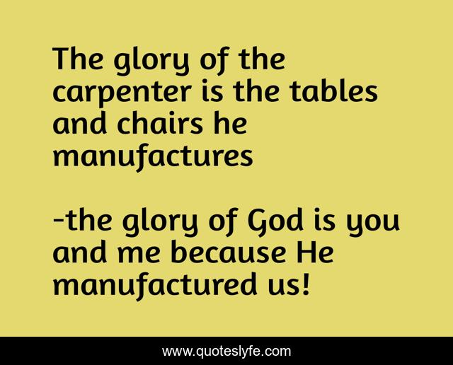 "the glory of God is you and me because He manufactured us! Quotes." Quoteslyfe.com, 2025. Sun. 07 Dec. 2025. <https://www.quoteslyfe.com/quote/The-glory-of-the-carpenter-is-the-129325>.