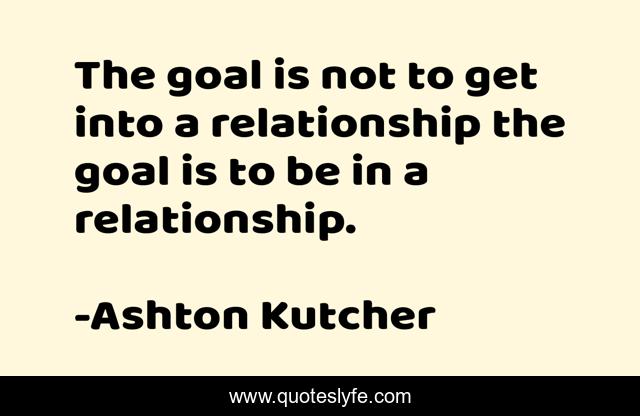 This page presents the quote "The goal is not to get into a relationship the goal is to be in a relationship.". Author of this quote is Ashton Kutcher. This quote is about goal, get,.