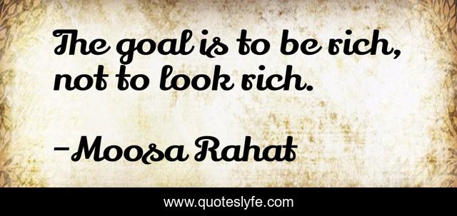 This page presents the quote "The goal is to be rich, not to look rich.". Author of this quote is Moosa Rahat. This quote is about aim, money, life, goal, rich,.