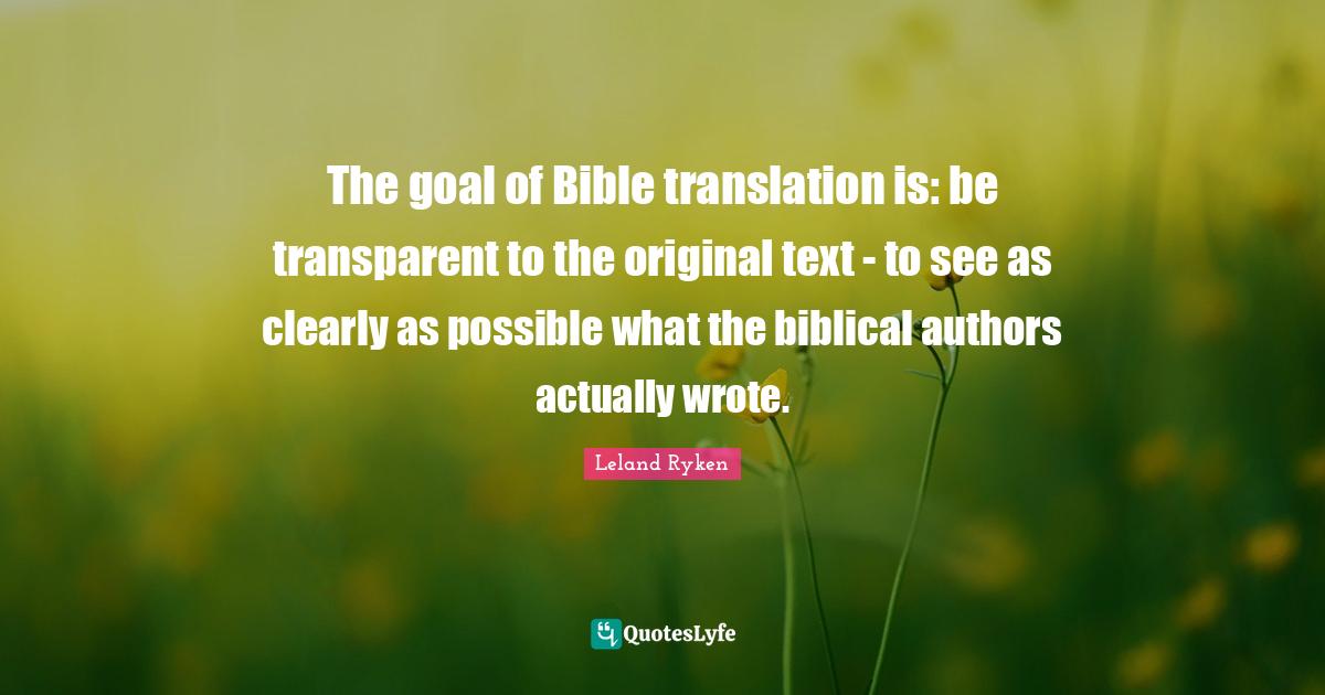 This page presents the quote "The goal of Bible translation is: be transparent to the original text - to see as clearly as possible what the biblical authors actually wrote.". Author of this quote is Leland Ryken. This quote is about biblical, translations, transparent, goal, bible,.