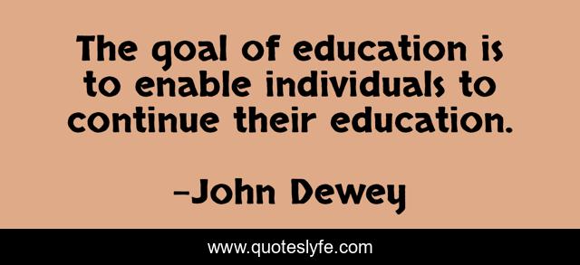 This page presents the quote "The goal of education is to enable individuals to continue their education.". Author of this quote is John Dewey. This quote is about education, philosophy,.