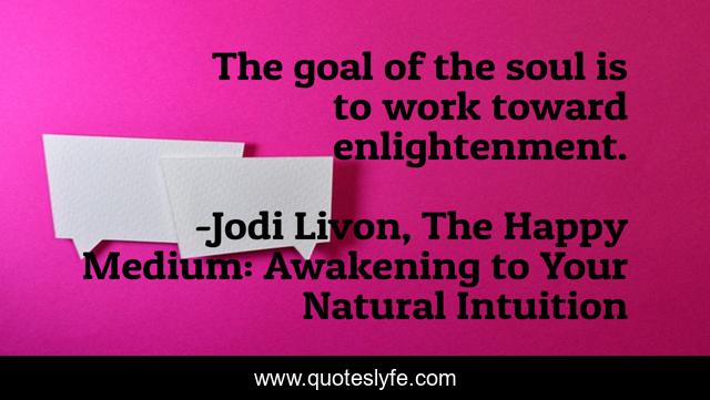 This page presents the quote "The goal of the soul is to work toward enlightenment.". Author of this quote is Jodi Livon, The Happy Medium: Awakening to Your Natural Intuition. This quote is about spiritual-growth, spiritual, medium, psychic, spirituality, inspirational, spiritual-insights, enthusiasm, psychic-medium,.