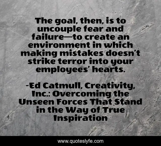 "Ed Catmull, Creativity, Inc.: Overcoming the Unseen Forces That Stand in the Way of True Inspiration Quotes." Quoteslyfe.com, 2025. Sat. 06 Dec. 2025. <https://www.quoteslyfe.com/quote/The-goal-then-is-to-uncouple-fear-145185>.