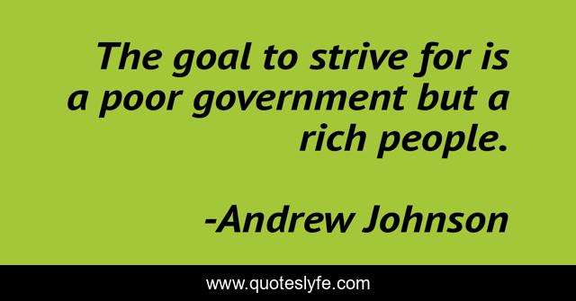 This page presents the quote "The goal to strive for is a poor government but a rich people.". Author of this quote is Andrew Johnson. This quote is about goal, rich, people,.