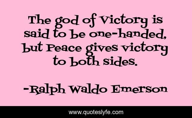 This page presents the quote "The god of Victory is said to be one-handed, but Peace gives victory to both sides.". Author of this quote is Ralph Waldo Emerson. .