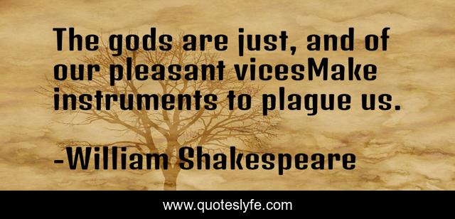 This page presents the quote "The gods are just, and of our pleasant vicesMake instruments to plague us.". Author of this quote is William Shakespeare. This quote is about justice, gods, edgar, vice,.