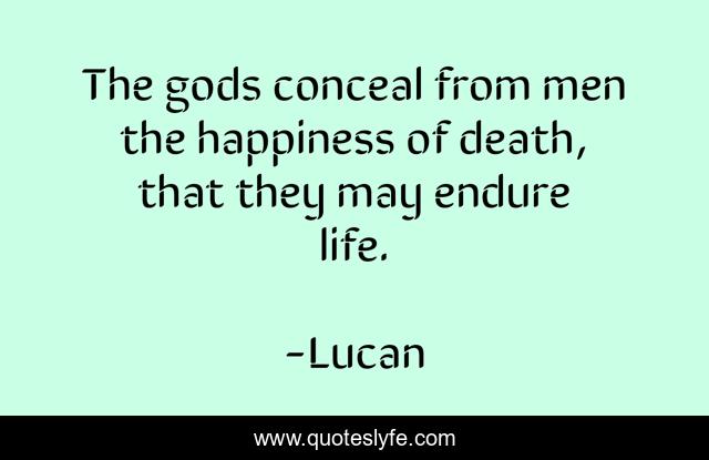 This page presents the quote "The gods conceal from men the happiness of death, that they may endure life.". Author of this quote is Lucan. This quote is about life, men, happiness,.