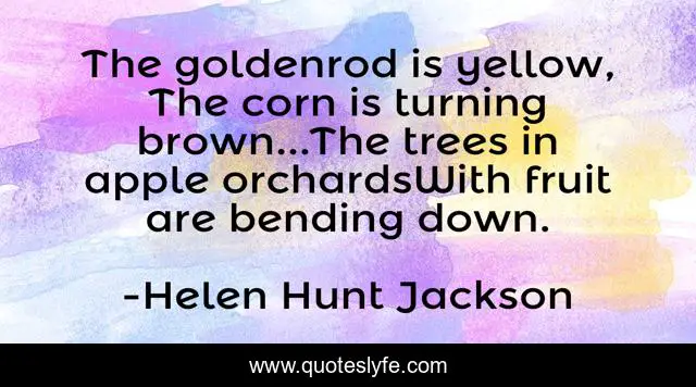 "Helen Hunt Jackson Quotes." Quoteslyfe.com, 2025. Mon. 08 Dec. 2025. <https://www.quoteslyfe.com/quote/The-goldenrod-is-yellow-The-corn-is-257177>.