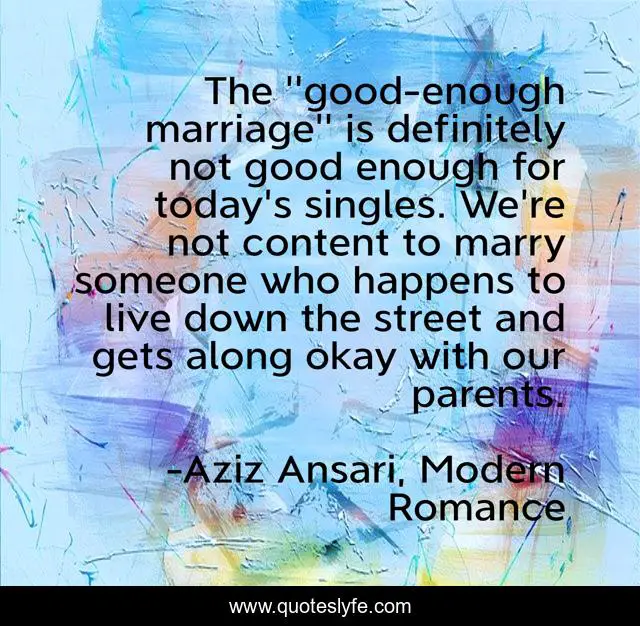 "Aziz Ansari, Modern Romance Quotes." Quoteslyfe.com, 2025. Mon. 08 Dec. 2025. <https://www.quoteslyfe.com/quote/The-good-enough-marriage-is-definitely-not-77006>.