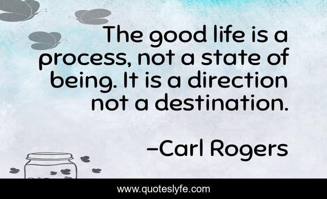 This page presents the quote "The good life is a process, not a state of being. It is a direction not a destination.". Author of this quote is Carl Rogers. This quote is about life, destination, good life,.
