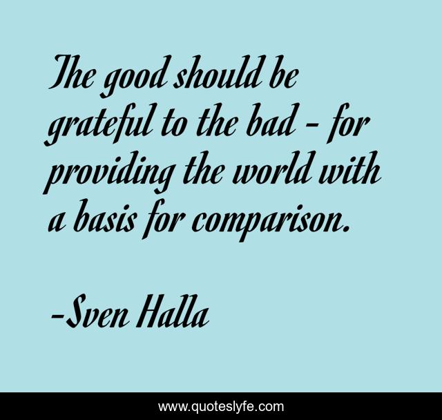 This page presents the quote "The good should be grateful to the bad - for providing the world with a basis for comparison.". Author of this quote is Sven Halla. This quote is about giving, goodness,.