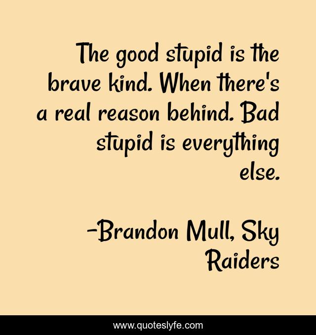 This page presents the quote "The good stupid is the brave kind. When there's a real reason behind. Bad stupid is everything else.". Author of this quote is Brandon Mull, Sky Raiders. This quote is about stupidity, bravery, truth,.