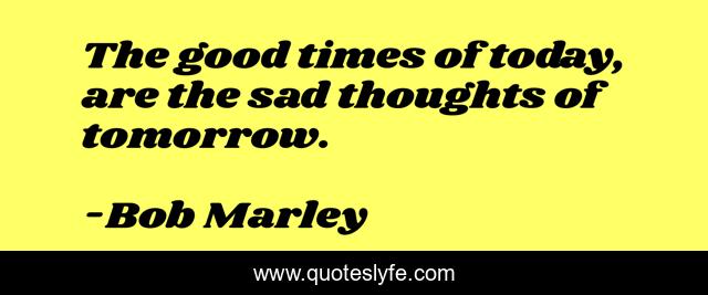 This page presents the quote "The good times of today, are the sad thoughts of tomorrow.". Author of this quote is Bob Marley. This quote is about tomorrow, today, sad,.