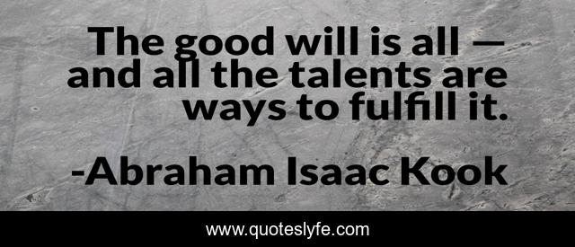 This page presents the quote "The good will is all — and all the talents are ways to fulfill it.". Author of this quote is Abraham Isaac Kook. This quote is about judaism, talent, spirituality-religion,.