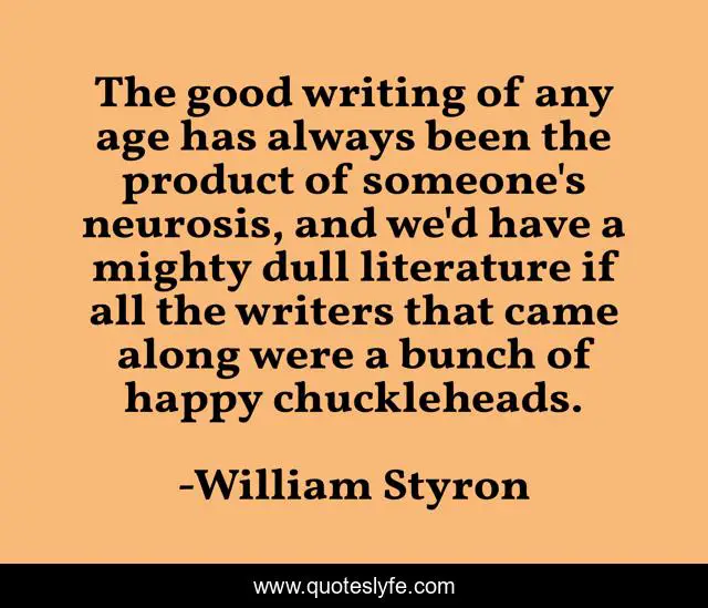 This page presents the quote "The good writing of any age has always been the product of someone's neurosis, and we'd have a mighty dull literature if all the writers that came along were a bunch of happy chuckleheads.". Author of this quote is William Styron. .