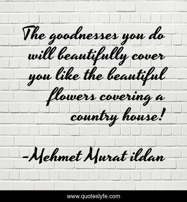 This page presents the quote "The goodnesses you do will beautifully cover you like the beautiful flowers covering a country house!". Author of this quote is Mehmet Murat ildan. .