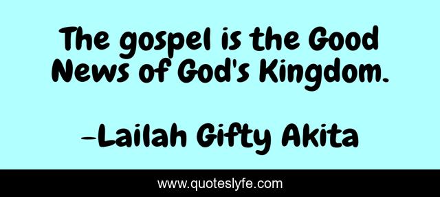 This page presents the quote "The gospel is the Good News of God's Kingdom.". Author of this quote is Lailah Gifty Akita. This quote is about kingdom, god, gospel, christian, religon,.