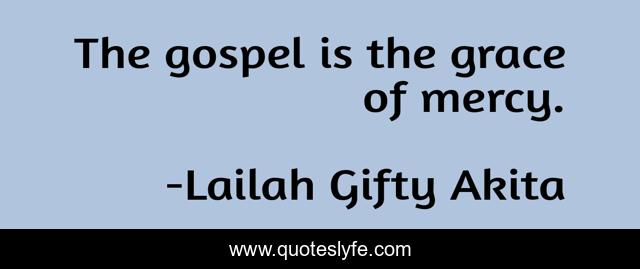 This page presents the quote "The gospel is the grace of mercy.". Author of this quote is Lailah Gifty Akita. This quote is about mercy, gospel, christian, grace, religion,.