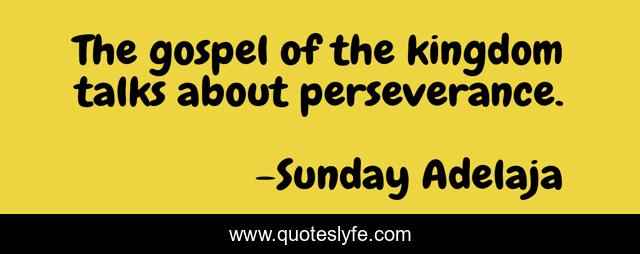 This page presents the quote "The gospel of the kingdom talks about perseverance.". Author of this quote is Sunday Adelaja. This quote is about perseverance, gospel, gospel-of-the-kingdom,.