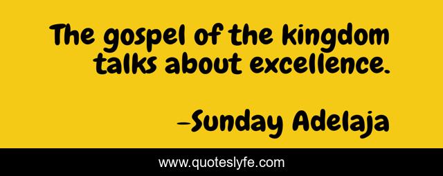 This page presents the quote "The gospel of the kingdom talks about excellence.". Author of this quote is Sunday Adelaja. This quote is about gospel, excellence, gospel-of-the-kingdom,.
