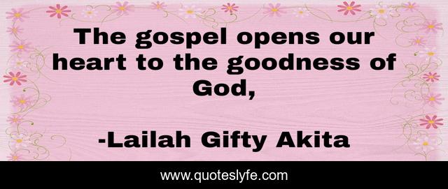 This page presents the quote "The gospel opens our heart to the goodness of God, ". Author of this quote is Lailah Gifty Akita. This quote is about god, christian-life, gospel, goodness, inspiration,.