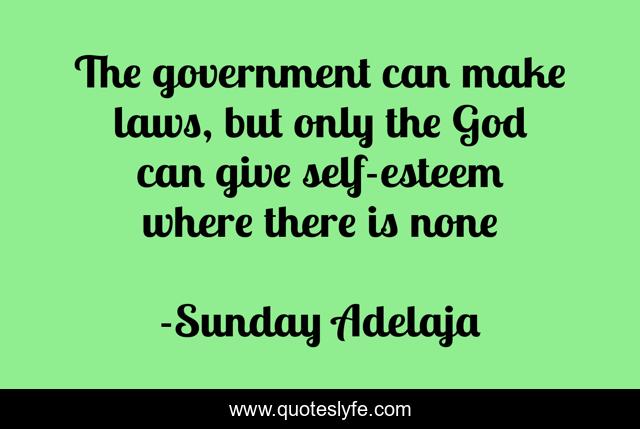 This page presents the quote "The government can make laws, but only the God can give self-esteem where there is none". Author of this quote is Sunday Adelaja. This quote is about god, government, give, laws, self-esteem,.