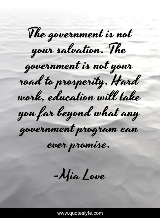 This page presents the quote "The government is not your salvation. The government is not your road to prosperity. Hard work, education will take you far beyond what any government program can ever promise.". Author of this quote is Mia Love. This quote is about conservatism, conservative, effort, hard-work, government,.